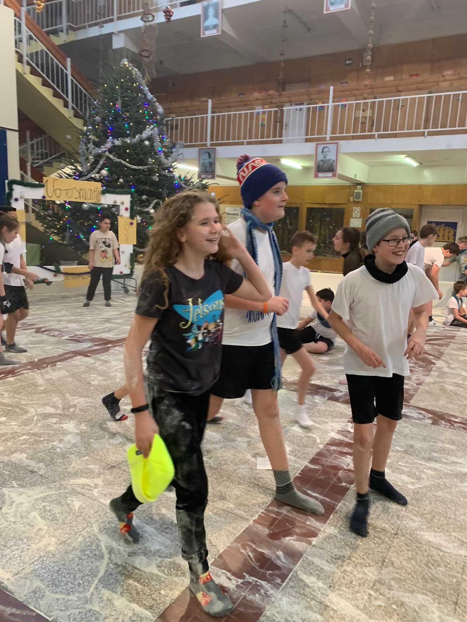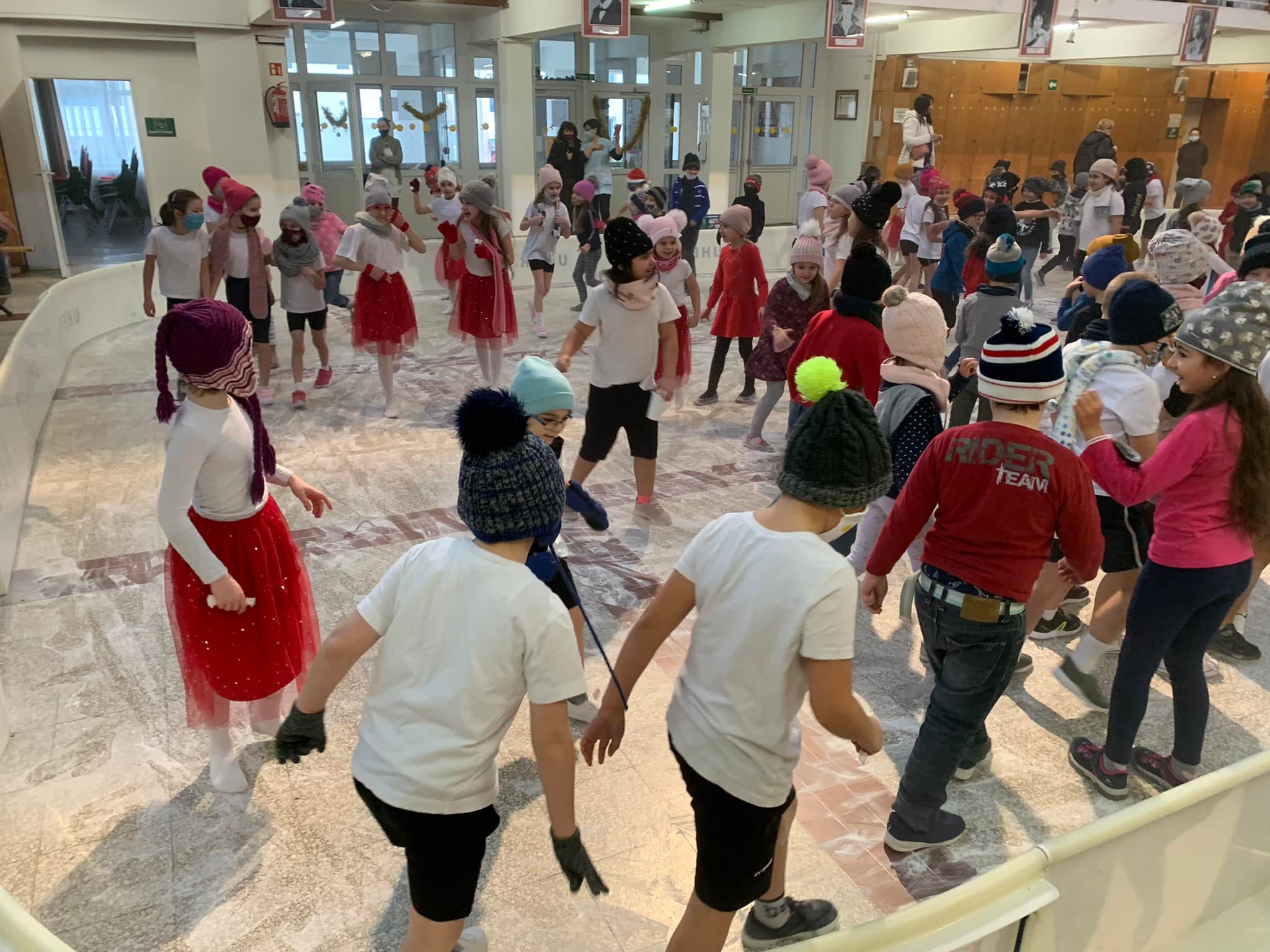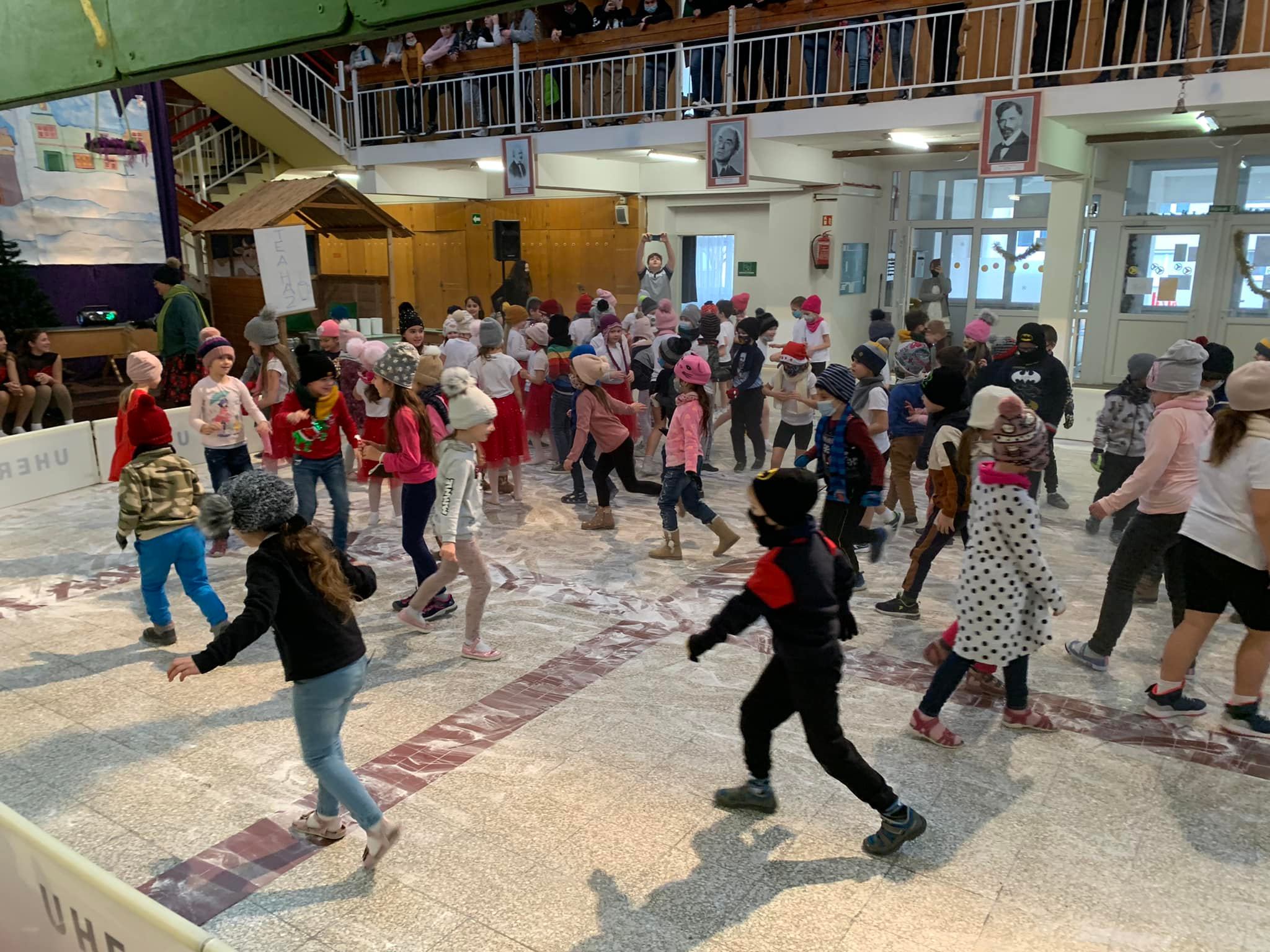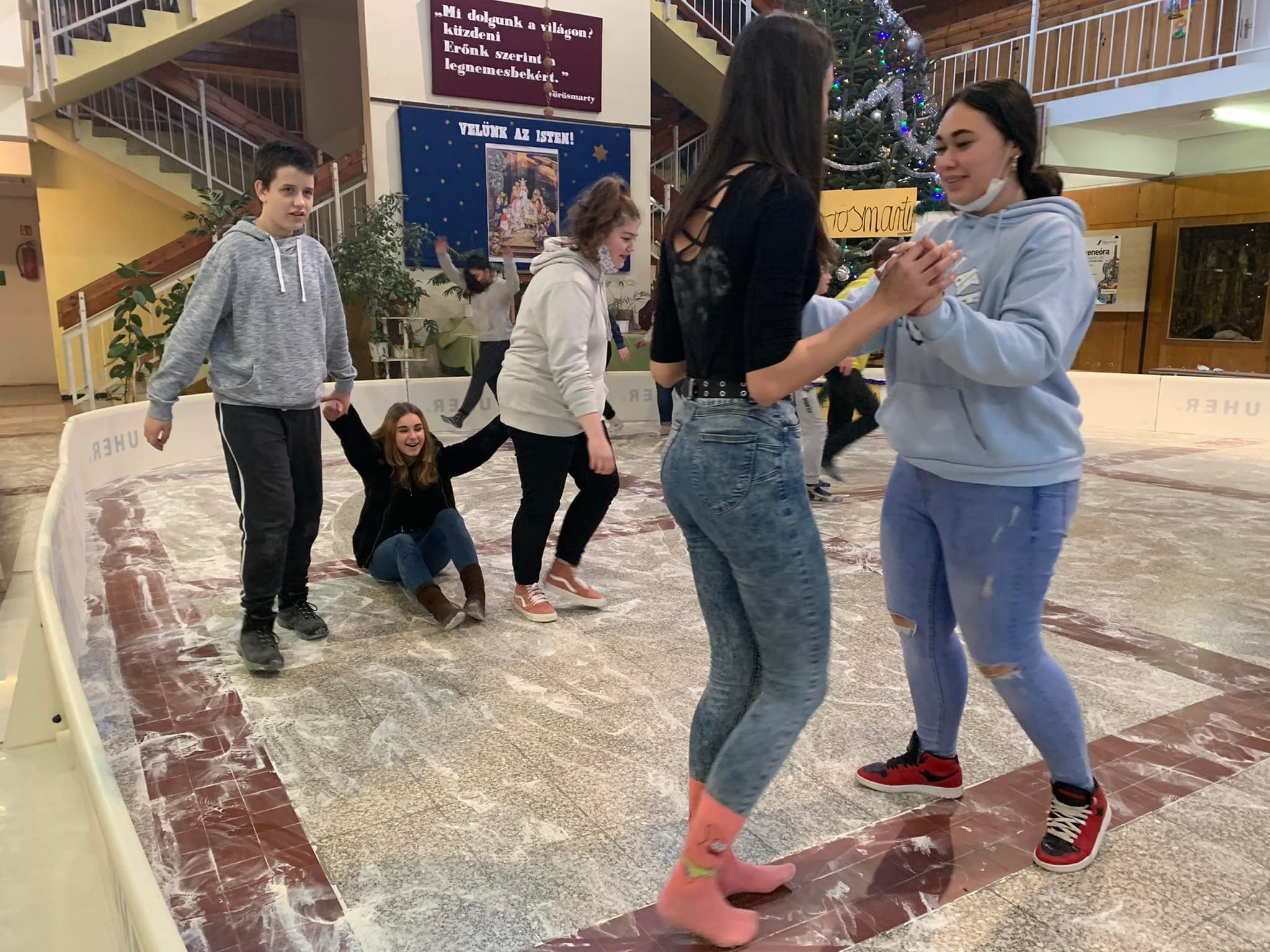 Lelkes testnevelő tanáraink jégpályát varázsoltak iskolánk aulájába. Kicsik és nagyok egyaránt jól szórakoztak. Szuper volt!