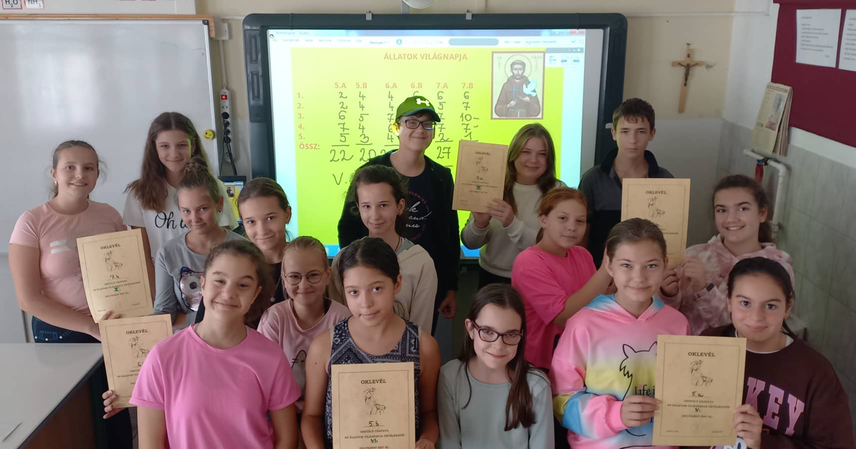Szűcs Zsuzsanna tanárnő szervezésében a felső tagozatos tanulók csapatversenyen mérték össze tudásukat e jeles napon. A verseny kiváló alkalmat kínált arra, hogy játékos formában gazdagítsák a gyerekek ismereteiket az állatok életéről, védelméről, és felhívja a figyelmet az állatokkal való együttélés fontosságára.