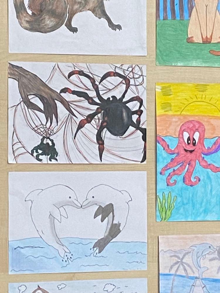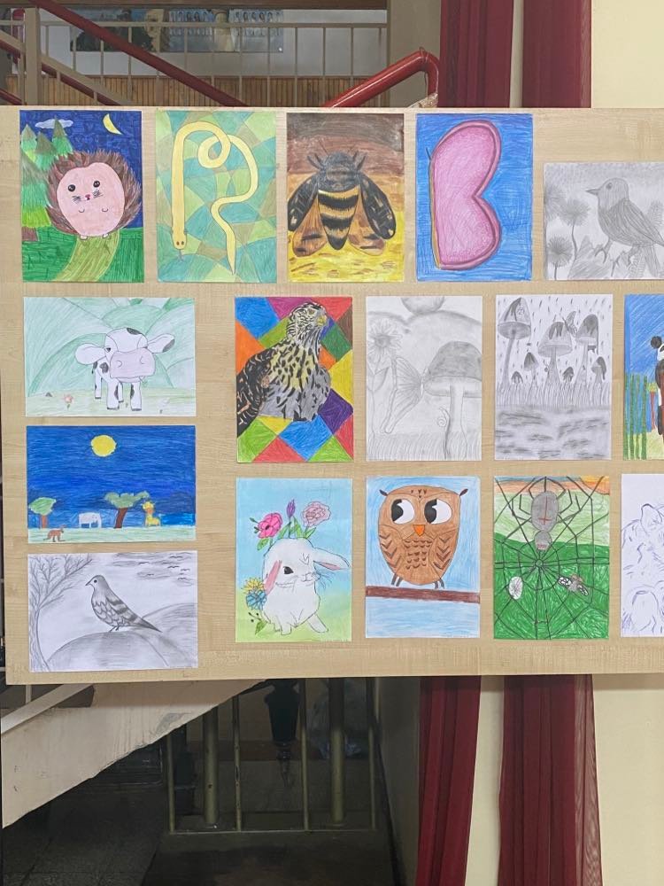 A felsős tanulók szebbnél szebb rajzaiból aulánkban kiállítást is rendeztünk. A legszebb képeket Szabóné Puskás Julianna tanárnő zsűrizte és állította ki a paravánokra.