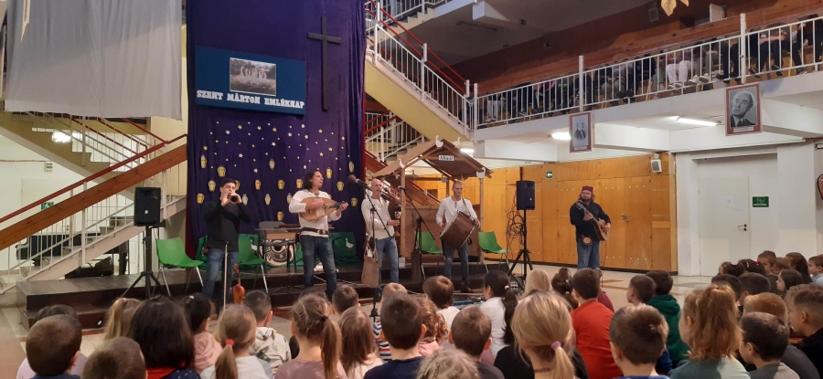 A Bordó Sárkány középkori világzenét játszik, a maga műfajában szinte egyedülálló Magyarországon. Nem csupán a pergős, dinamikus zenéjük kötötte le a gyerekeket, hanem a kreatív elképzelések, az autentikus vonalat erősítő hangszerek, viseletek és az előadásmód. A zenészek közül ketten még a "közönség" soraiba is bementek, osztatlan sikert aratva. Az előadott számok között hangszerbemutatóval is színesítették a programot. Köszönjük szépen a szervezők munkáját!