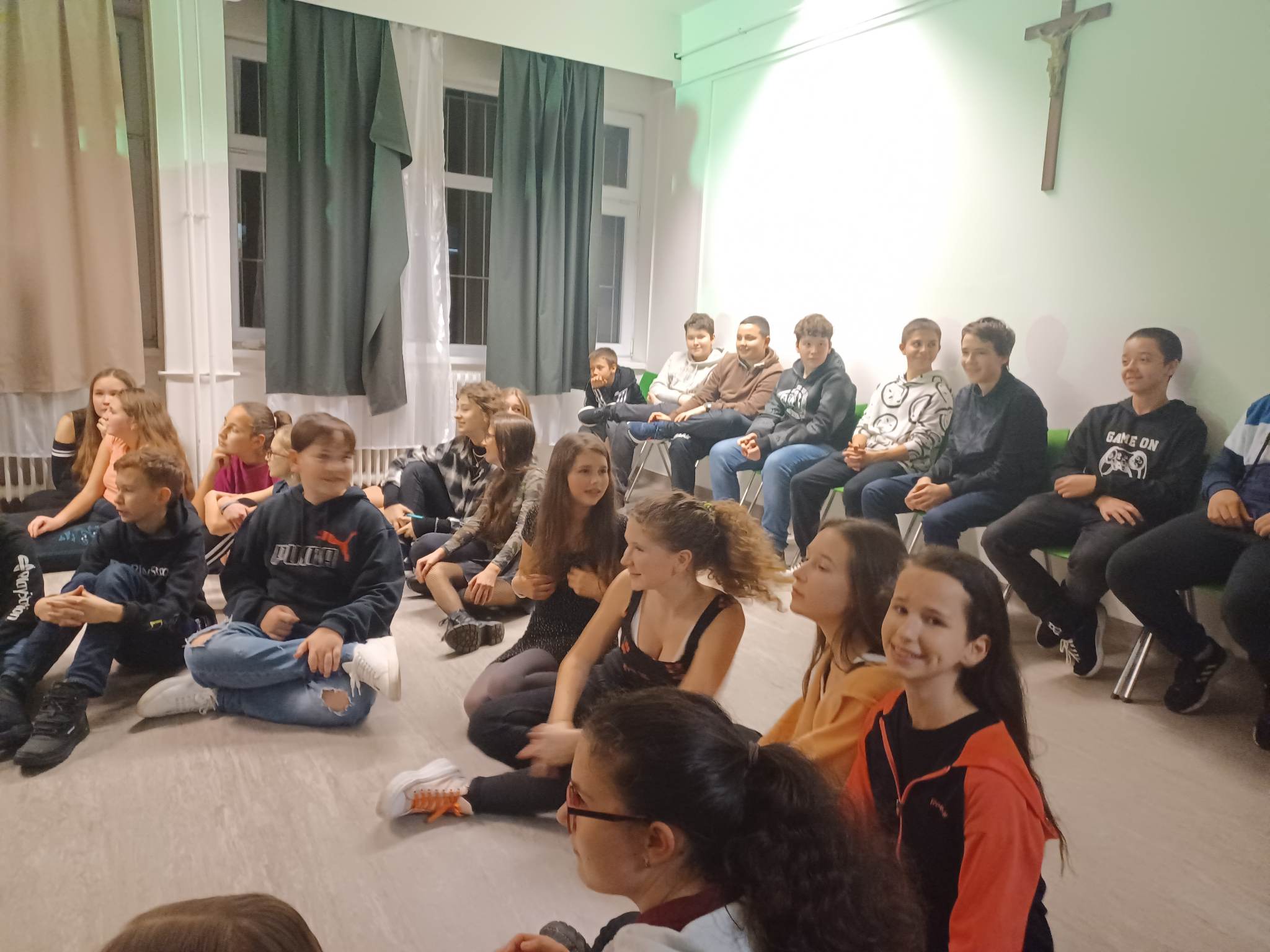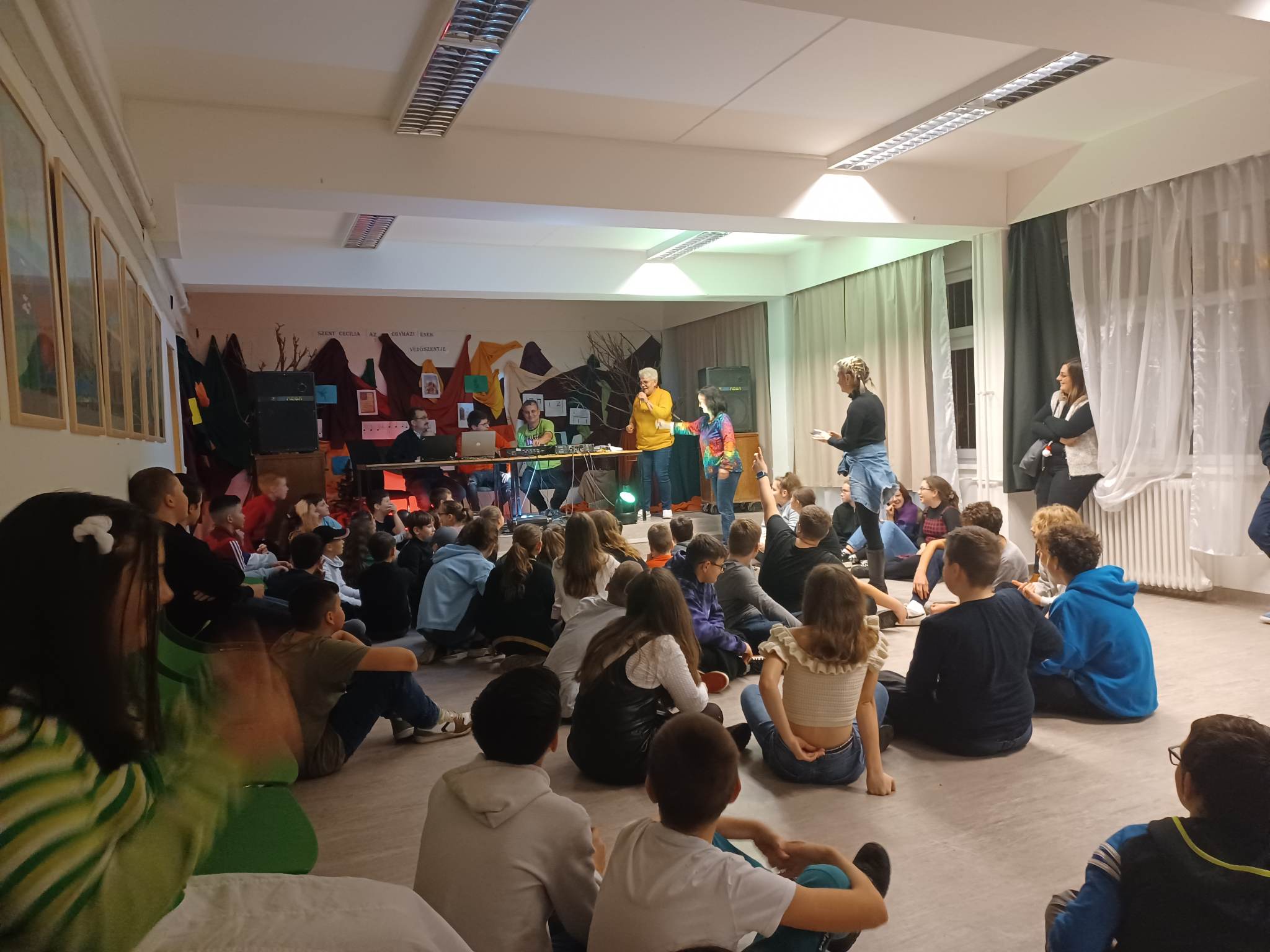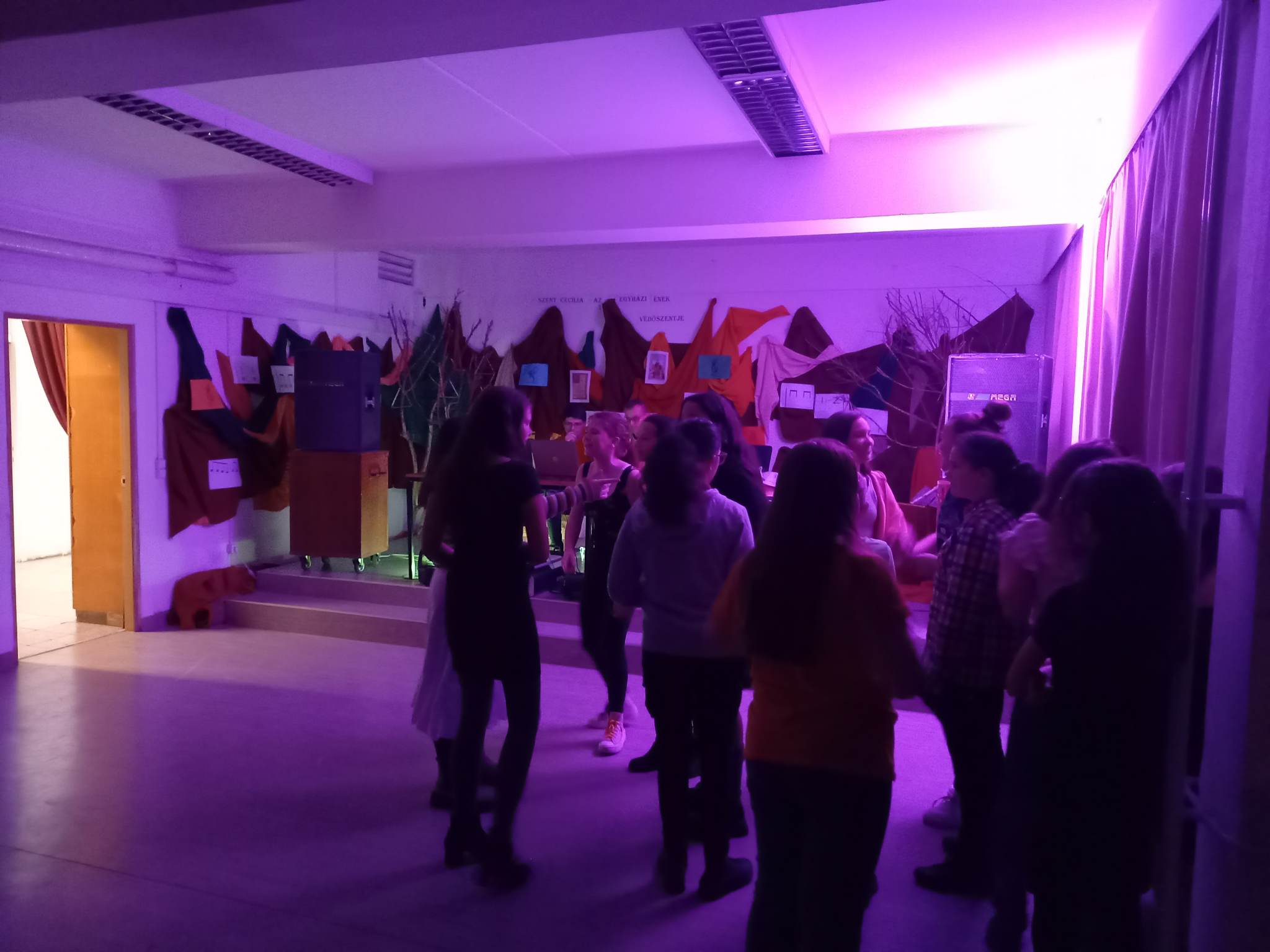 A Diákönkormányzat még advent előtt (november 25-én) megszervezte felsős tanulóinknak az őszi időszakban szokásos diszkót. Ezúttal a színházteremben dübörgött a zene 17 és 19 óra között. Iskolánk karbantartója, Kiss Sándor keze alatt megújultak a szükséges technikai berendezések, ő és rendszergazdánk, Kovalik Gábor vállalta a DJ szerepét. Aztán mégis a gyerekek kívánságai győztek...