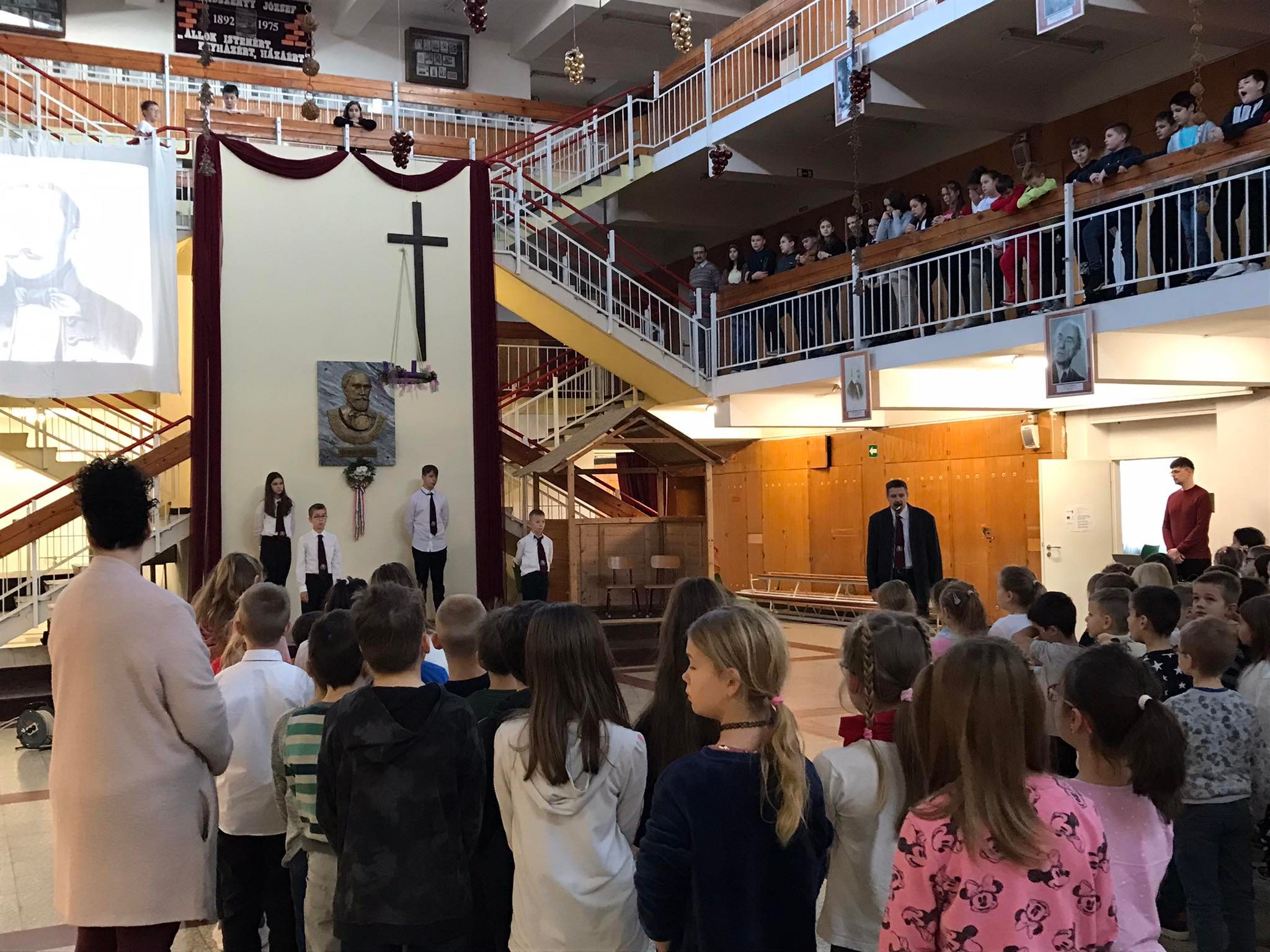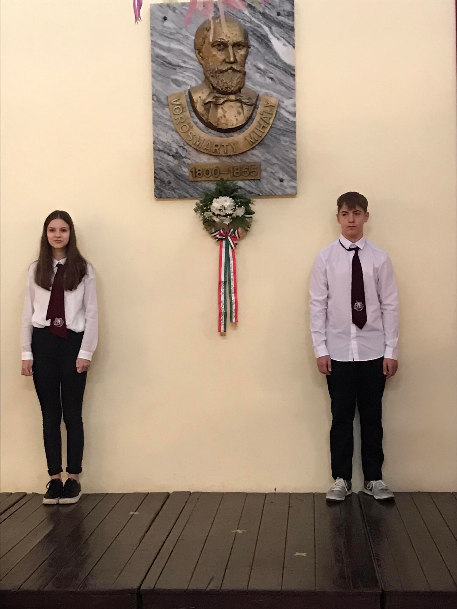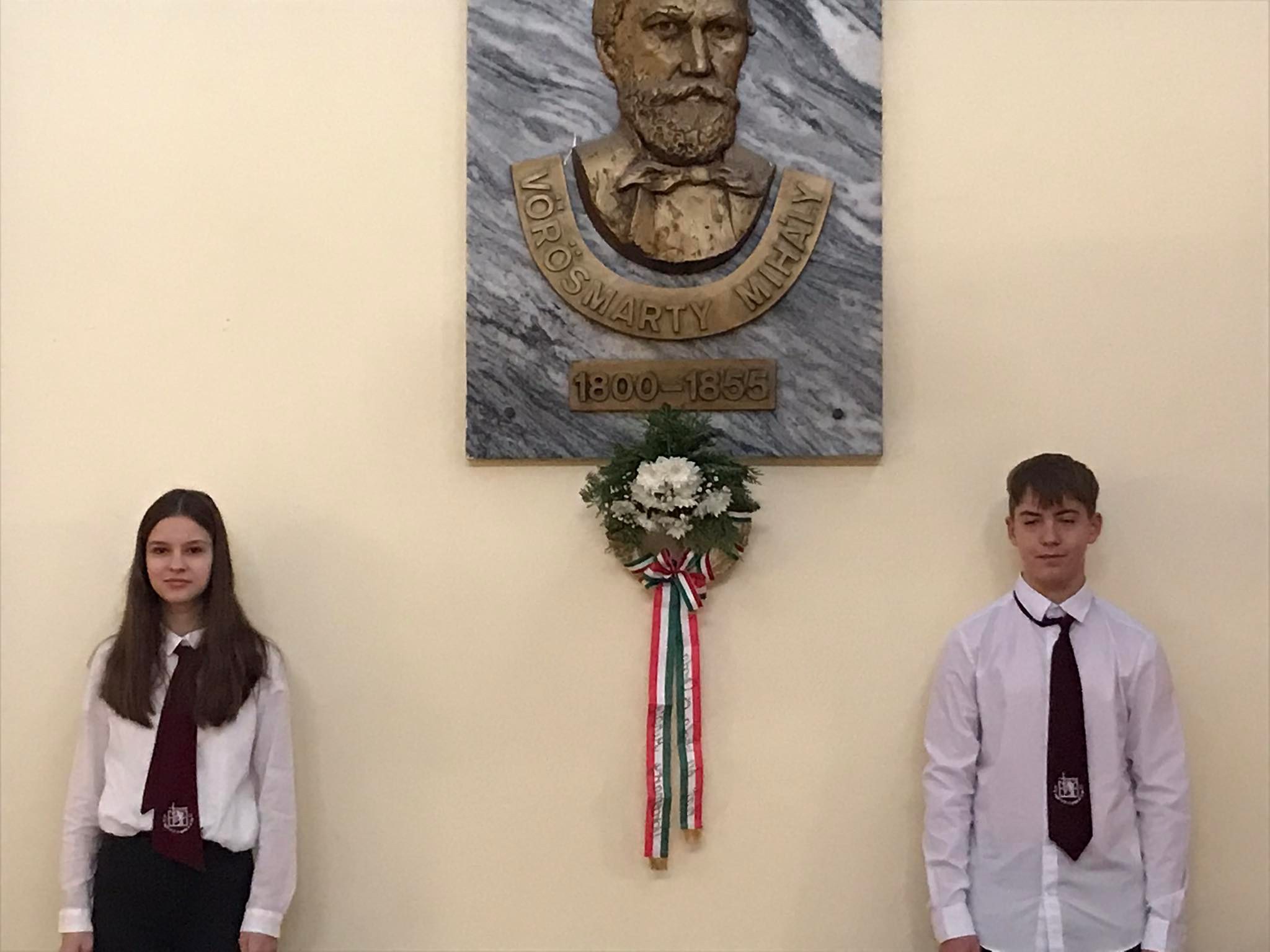 A megemlékezés részeként diákjaink közösen elmondják Vörösmarty Szózatának egy részletét. A Vörösmarty-hét elindításával, szervezésével kapcsolatosan köszönjük Csorba Péter DÖK-vezető munkáját!
