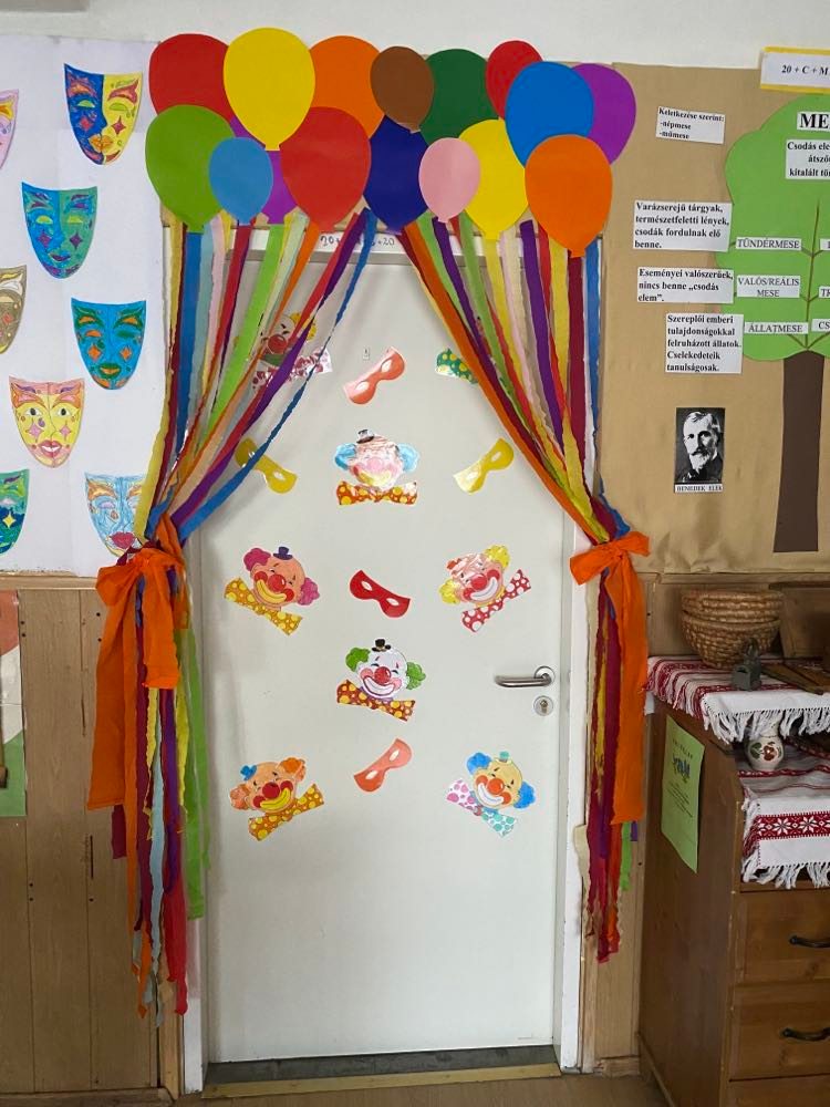 Szebbnél szebb dekorációkat, ötleteket valósítottak meg az osztályközösségek. A rajz-és technikaórán készített munkák mellett a már hagyományos farsangi dekorációk is megjelentek a falakon, ajtókon, ablakokon. Lampionok, lufik, szerpentinek teszik hangulatossá iskolánkat egészen hamvazószerdáig, a farsangi időszak végéig.
