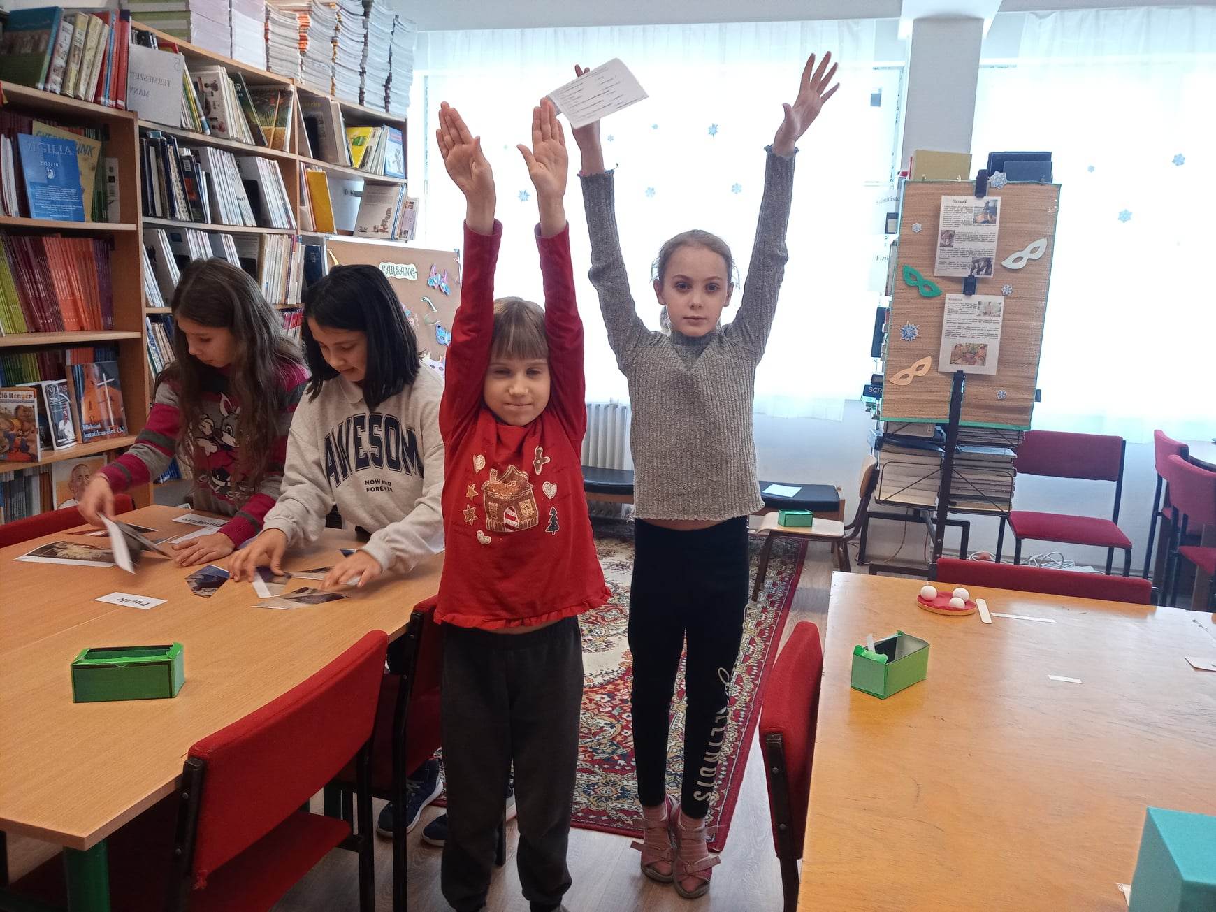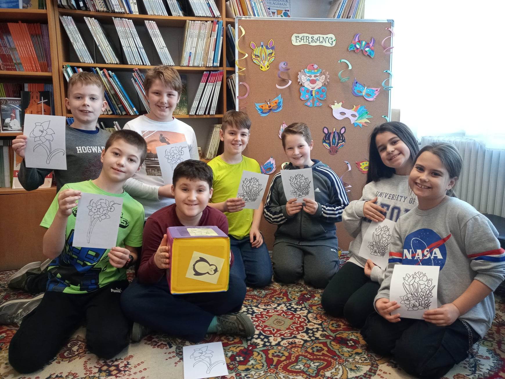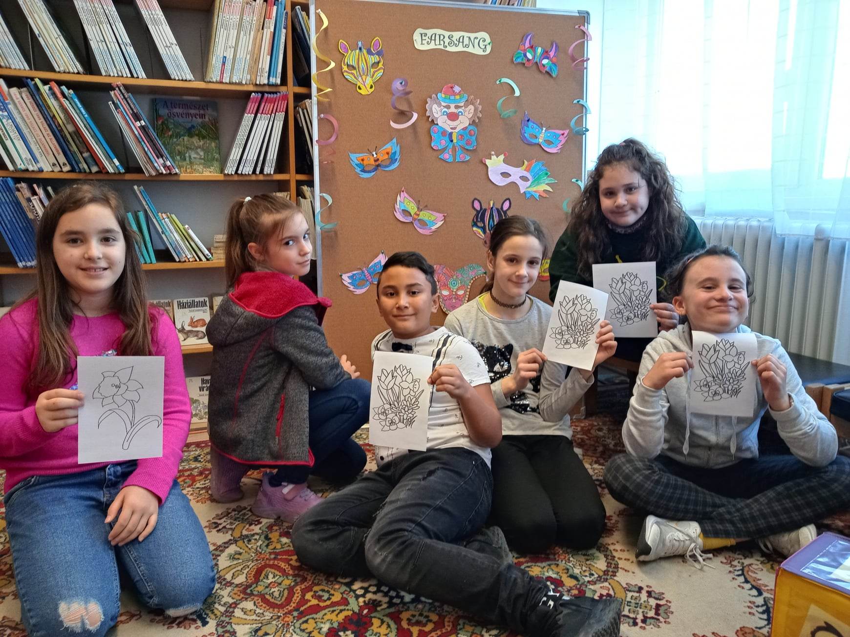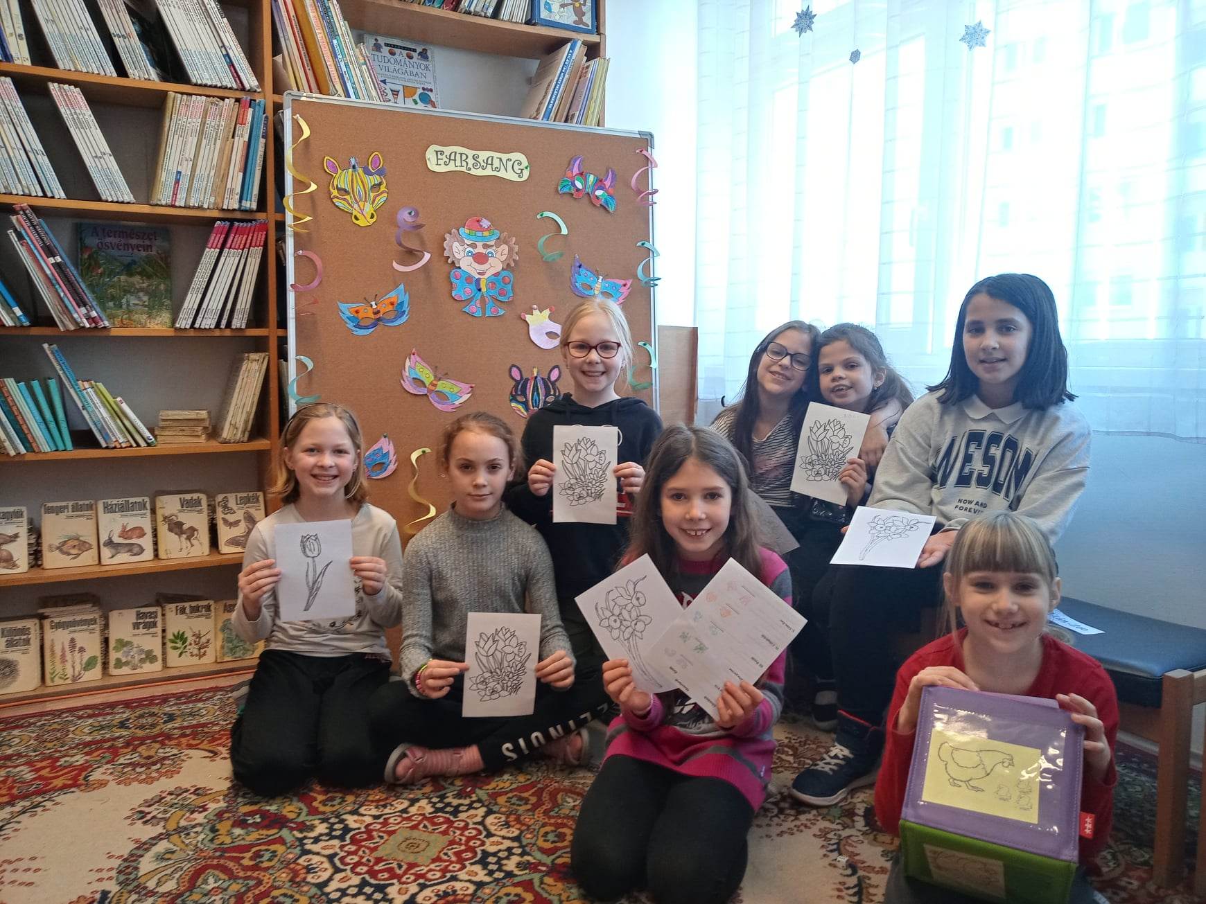 Az osztályok tanulói lelkesen vettek részt a tavaszköszöntő, farsangzáró rendhagyó könyvtári órán.