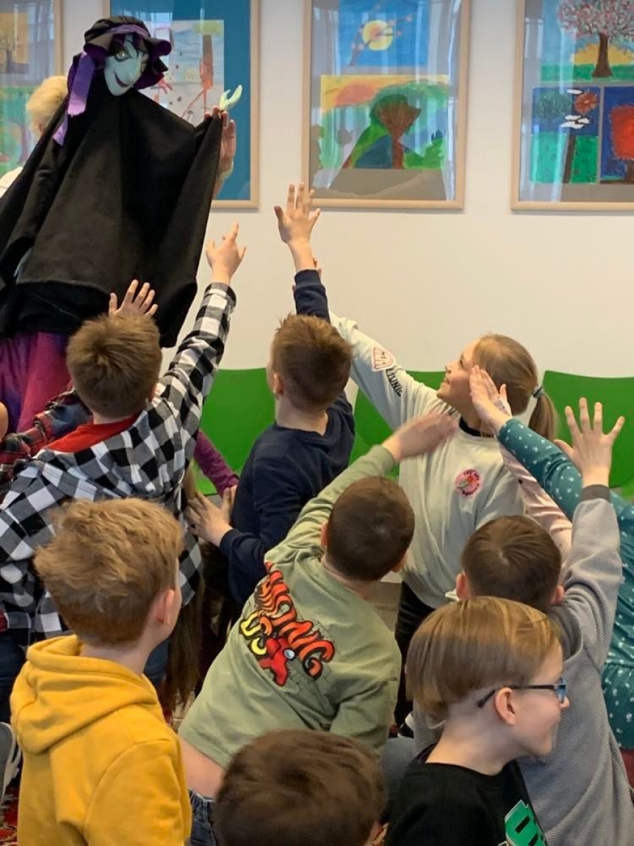 Iskolánk másodikosai a Színházi Világnap alkalmából bábsimogató foglalkozáson vettek részt iskolánk színháztermében.