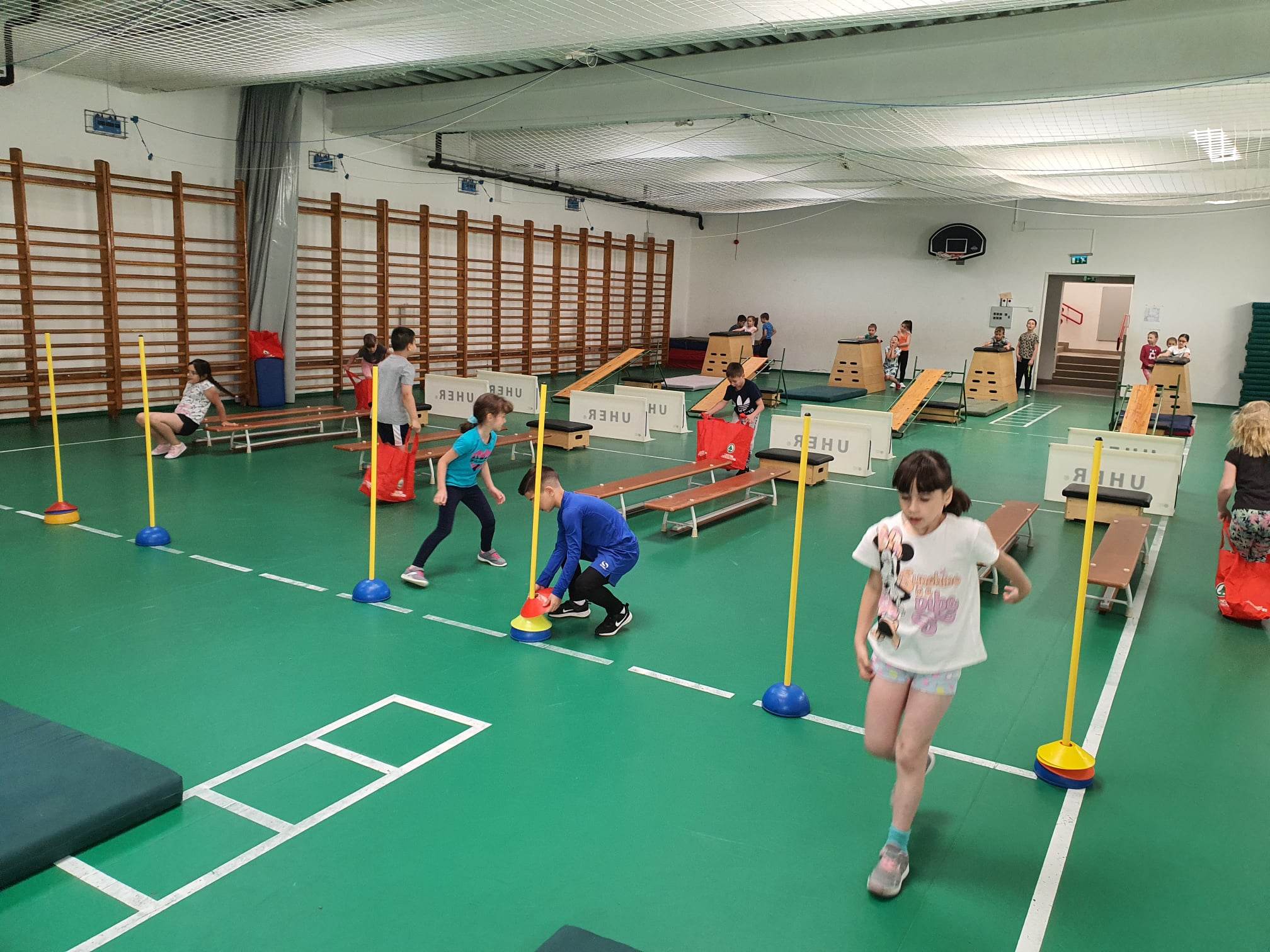 A kis tornateremben Pintér Dávid tanár úr vezetésével izgalmas akadálypályát kellett legyőzniük a gyerekeknek.