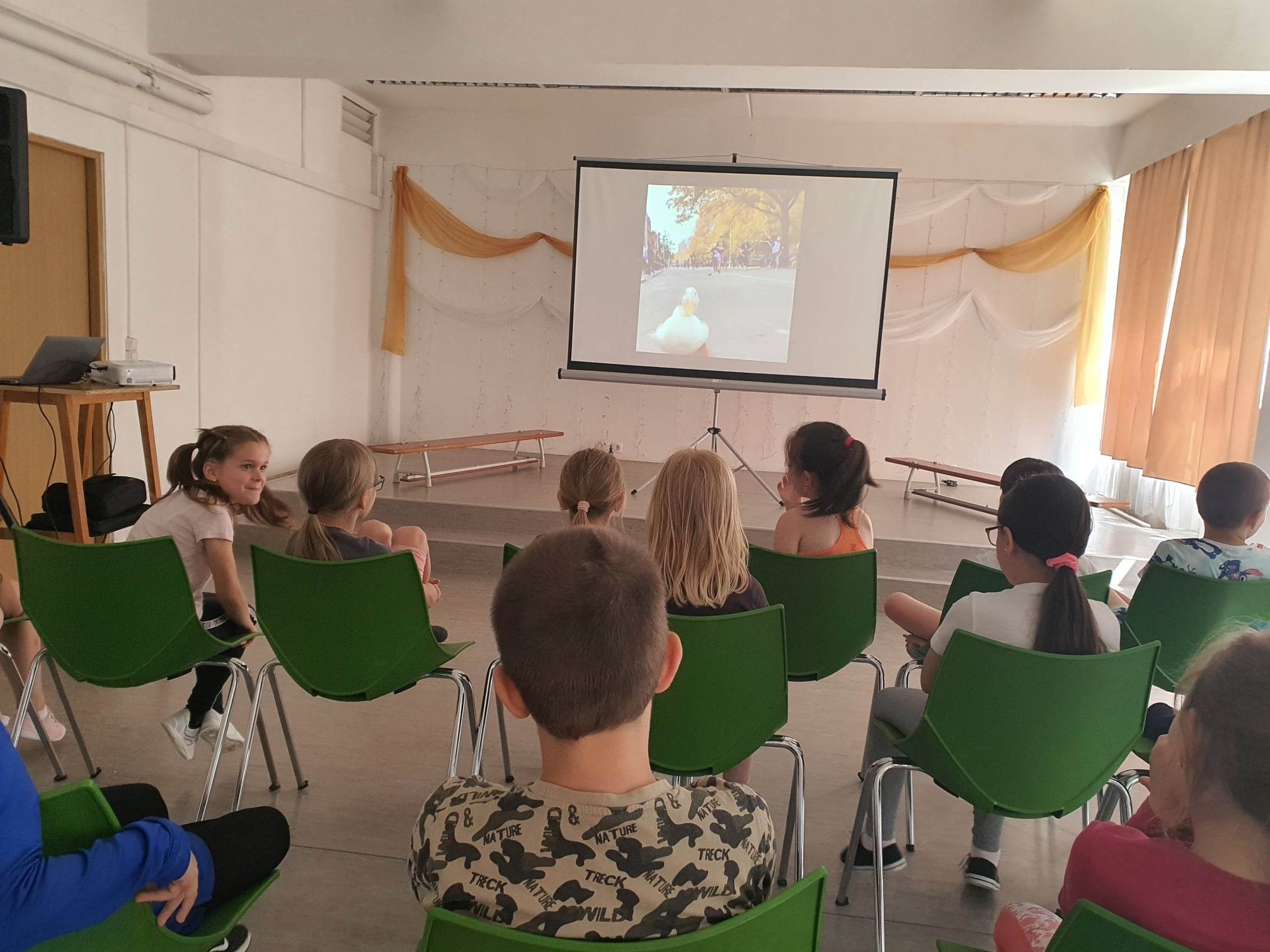 A színházteremben Kovalik Gábor informatikus kollégánk két érdekes videót vetített a sportsikerekről, példaképekről.