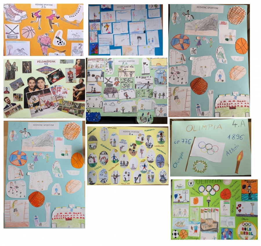 Az osztályok több témában készítettek plakátokat. Az ötkarikás játékokról, kedvenc sportjaikról, példaképeikről rajzoltak, nyírtak, ragasztottak a kartonra.