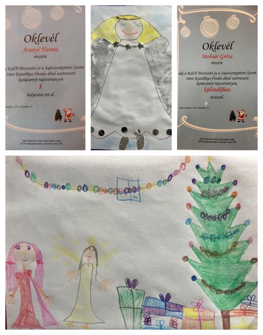 A K&H Biztosító sajószentpéteri képviselői irodája rajzpályázatot hirdetett, melyre óvodásaink is örömmel készültek. A Kagyló csoportból Aranyi Hanna első helyezést ért el, a Levendula csoportból Molnár Gréta pedig különdíjban részesült.