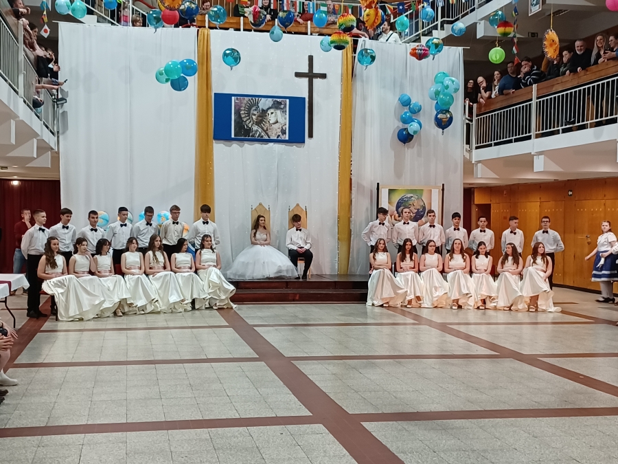 Idén február 14-én megtartottuk felsős tanulóink farsangi rendezvényét. Ebben az évben egy kis földrajzot is csempésztünk a mulatságba. Minden osztály egy országra jellemző számot adott elő. A produkciókat a felsős lányok közös tánca is színesítette. A műsort idén is a nyolcadikosok keringője zárta, amely után diákjaink szüleikkel együtt is táncolhattak.
