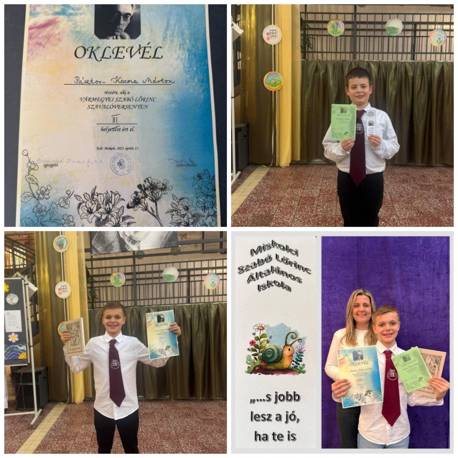 Pásztor-Kozma Márton 4.a osztályos tanuló kiváló versmondásával 3. helyezést ért el.