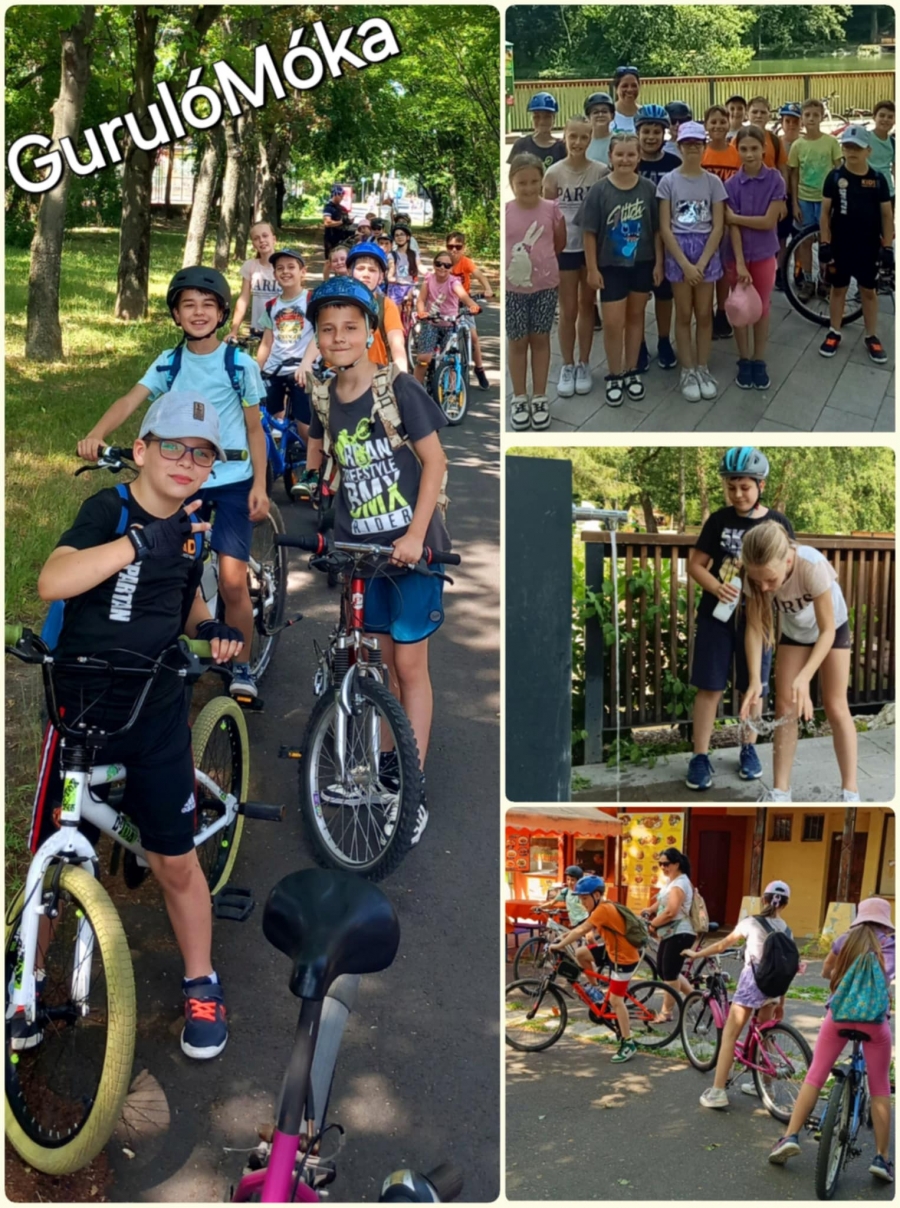 A gyerekek a biciklijükkel érkeztek reggel az iskolába, a túrára néhány szülő is elkísérte őket. Körbetekerték a tavat, fagyiztak. A szülők eközben szalonnát sütöttek, a gyerekek fociztak, élvezték a közös játékot. Étkezés előtt közösen hálát adtak. Tartalmas, vidám napot töltöttek együtt, jó érzéssel zárták az évet.