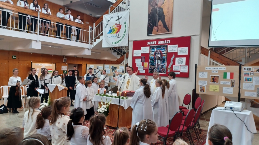 Szeptember 29-én, Szent Főangyalok ünnepén kápolnánk védőszentje, Szent Mihály arkangyal tiszteletére búcsúi szentmisét mondott Főtisztelendő Barta Márton miskolc-mindszenti káplán atya. Az ünnepet megtisztelte jelenlétével Főtisztelendő Juhász Ferenc plébános atya, valamint iskolánk lelkipásztora, Szedmák Zoltán atya.