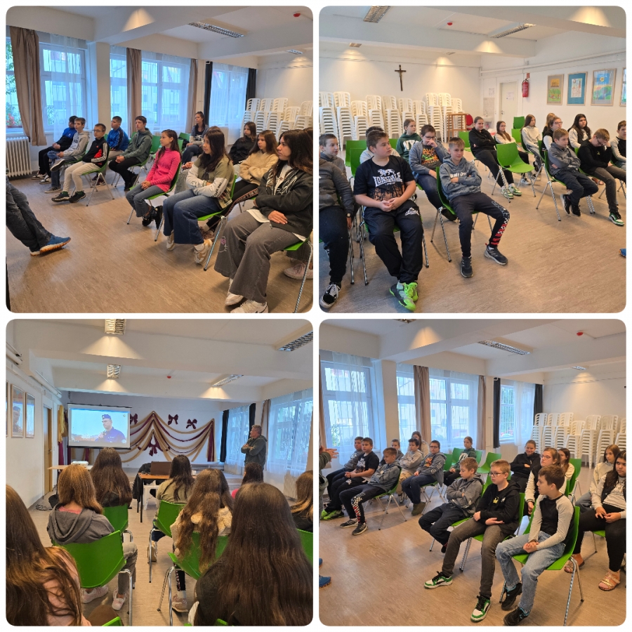 Iskolánk 6. évfolyamos tanulói részt vettek Polyák Ferenc r. főhadnagy iskolai bűnmegelőzési programsorozatának első előadásán. Diákjaink megismerkedhettek a rendőrök színes és alázatos munkájával. A D.A.D.A. program célja, hogy a gyerekek fel tudják ismerni a vészhelyzeteket, fel tudják mérni magatartásuk, cselekményeik következményeit, hogy ő maguk ne váljanak sem áldozattá, sem elkövetővé.