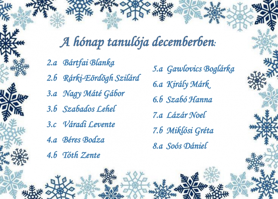 A hónap tanulói decemberben
