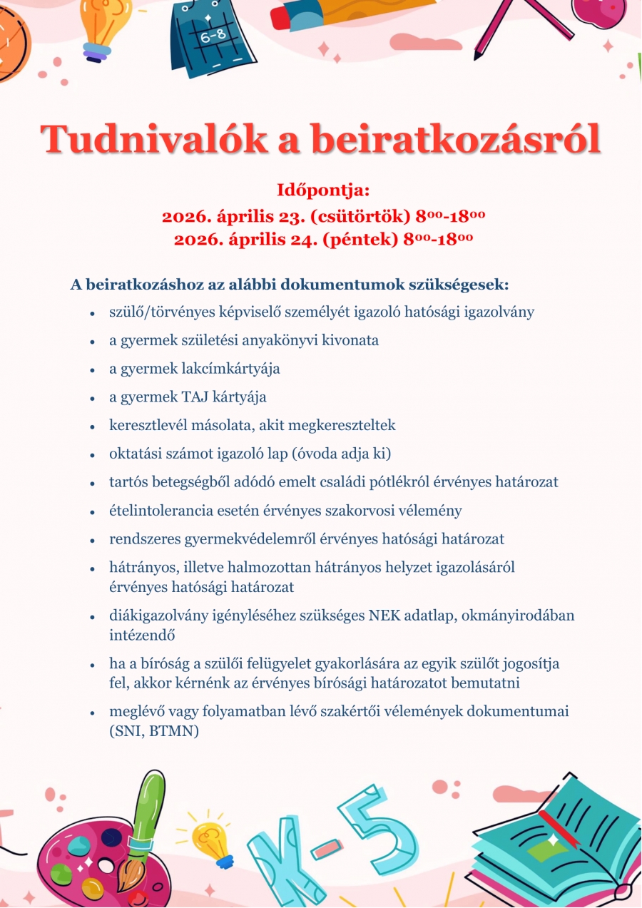 Tudnivalók a beiratkozásról
