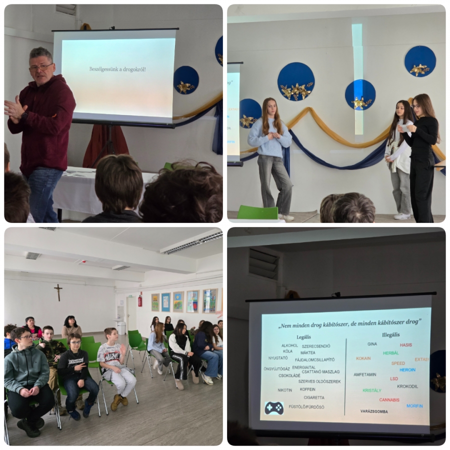 Iskolánk hatodik évfolyamos tanulói bűnmegelőzési programsorozatunk következő óráján a drogprevencióról beszéltek Polyák Ferenc rendőr főhadnaggyal. Diákjaink aktívan bekapcsolódtak a beszélgetésbe, kérdéseket tettek fel és hasznos tanácsokat kaptak arra vonatkozóan, hogy mit tehetnek, ha veszélyes helyzettel találkoznak. Ebben segítségükre voltak az interaktív csoportfeladatok, melyekben a kábítószerek veszélyeivel és azoknak az egészségre és a jövőre gyakorolt hatásaival néztek szembe.