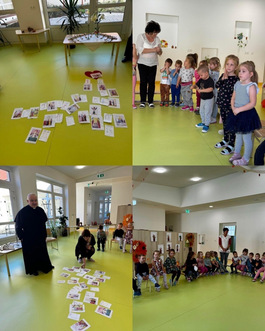 November 5-e, Szent Imre napja sokat jelentett számunkra, hiszen első alkalommal ünnepeltünk együtt. Paszternákné Tóth Júlia hitoktató segítségével játékos módon, megismerhették a gyermekek Imre herceg életét, annak főbb állomásait. Takács Alajos atya elsőként, megszentelte az Egri Főegyházmegyétől kapott feszületeket, melyek ezt követően az óvoda helységeiben lettek elhelyezve, majd lelki életünket táplálva, vezette a közös imádságunkat. Ezt követően pedig hála telt szívvel, énekben mondtunk köszönetet Szent Imrének. Istennek legyen hála egy csodás délelőtt részesei lehettünk.