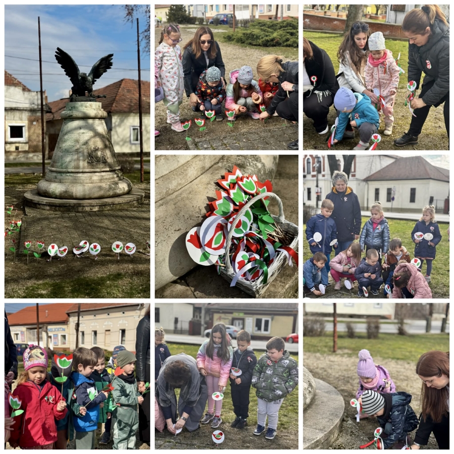 A gyermekek saját készítésű, nemzeti színű alkotásaikkal tisztelegtek bátor elődeink emléke előtt. A megható pillanatokat versekkel és dalokkal tettük még ünnepélyesebbé óvodásainkkal.