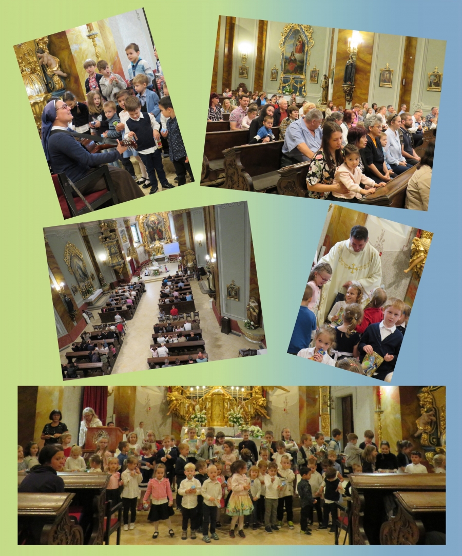 Gyermekek, szülők, testvérek, nagyik, óvodai dolgozók, közel 180-an gyűltünk össze a Mindszenti templomban tanévzáró szentmisére, hogy hálát adjunk a jó Istennek az elmúlt tanév minden öröméért, nehézségéért, kegyelméért. Köszönetet mondtunk Thiago atyának és Teréz nővérnek a velünk töltött idejükért: a közös szentmisékért, imákért, a zenés szolgálatért.