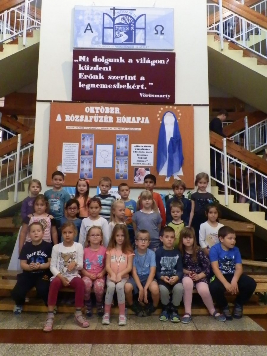 Óvodánkkal csatlakoztunk az Egymillió gyermek imádkozza a rózsafüzért a békéért mozgalomhoz. Az Őzike és a Katica csoport gyerekei, az óvó nénikkel a csoportjukban egy tizedet imádkoztak. A Napvirág csoportosok az aulában, az iskolásokkal közösen imádkozták a rózsafüzért.
