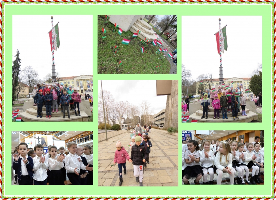 A Katica és a Méhecske csoportos gyermekek kis ajándékaikkal elsétáltak az Országzászlóhoz és a Márciusi Ifjakra emlékezve énekeltek, verseltek egyet. Az Őzike nagycsoportosai az iskolában vettek részt az 1848. március 15-e emlékére rendezett ünnepségen.