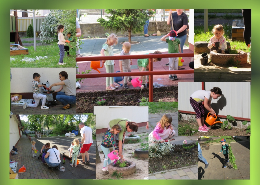 Az udvarunk szépítgetésével és virágok ültetésével ünnepeltük meg óvodánkban a Föld napját. Az apró kezek nagy lelkesedéssel dolgoztak. Örömüket lelték az ovisok a felnőttekkel közös munkában. Kicsik és nagyok fáradozásának virágokkal teli, kicsinosított óvodaudvar lett az eredménye.