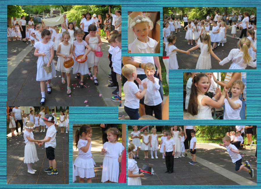 A pünkösdi kiskirályné-járás szép hagyományát elevenítettük fel óvodánkban. A fehér ruhás kislányok jókívánságaikkal köszöntötték a „házak” lakóit. Megválasztottuk a pünkösdi királyt is, majd táncházzal folytatódott a pünkösdölő délutánunk.