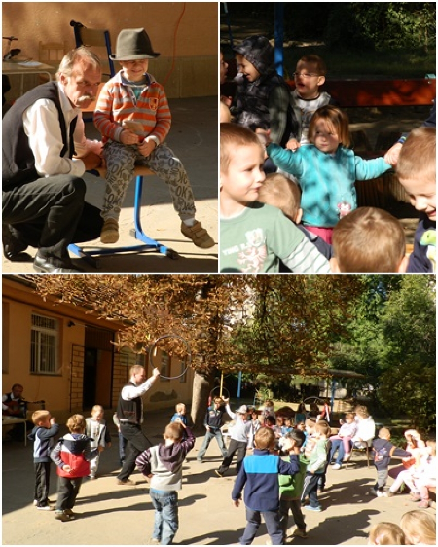 A Lármafa együttes vidám szüreti műsorával örvendeztetett meg minket. Őszi, szüreti énekeket, népdalokat szedtek csokorba. A gyerekek lelkesen vettek részt a táncokban, a körjátékokban.