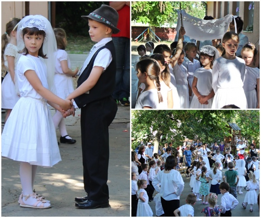 Kedves hagyományaink egyike óvodánkban a pünkösdi királyné- járás felelevenítése. A tiszta fehérbe öltözött kislányok idén is körülhordozták az óvoda udvarán a kis királylányt. A kislegények vetélkedése során a legügyesebb elnyerte a pünkösdi király címet, és a jogot, hogy a kis királylánnyal táncolhasson. A pünkösdölő ünnepségünk a gyerekek és a felnőttek közös táncházával zárult.