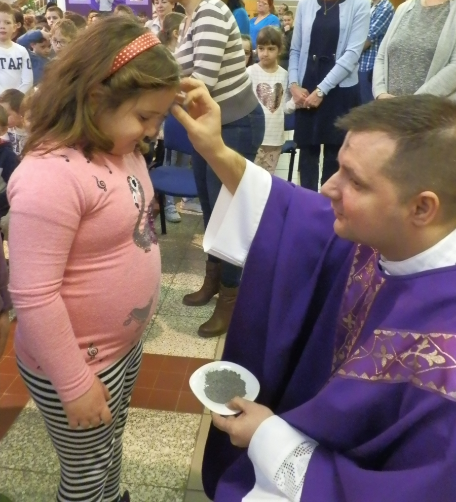 Az ünnepi szentmisét a messziről jött fiatalok zenés szolgálatával Józsi atya és három paptestvére celebrálta. Ezen a szentmisén az óvoda minden gyereke és dolgozója részt vett, és mindannyian részesültünk a hamvazkodás szentelményében.