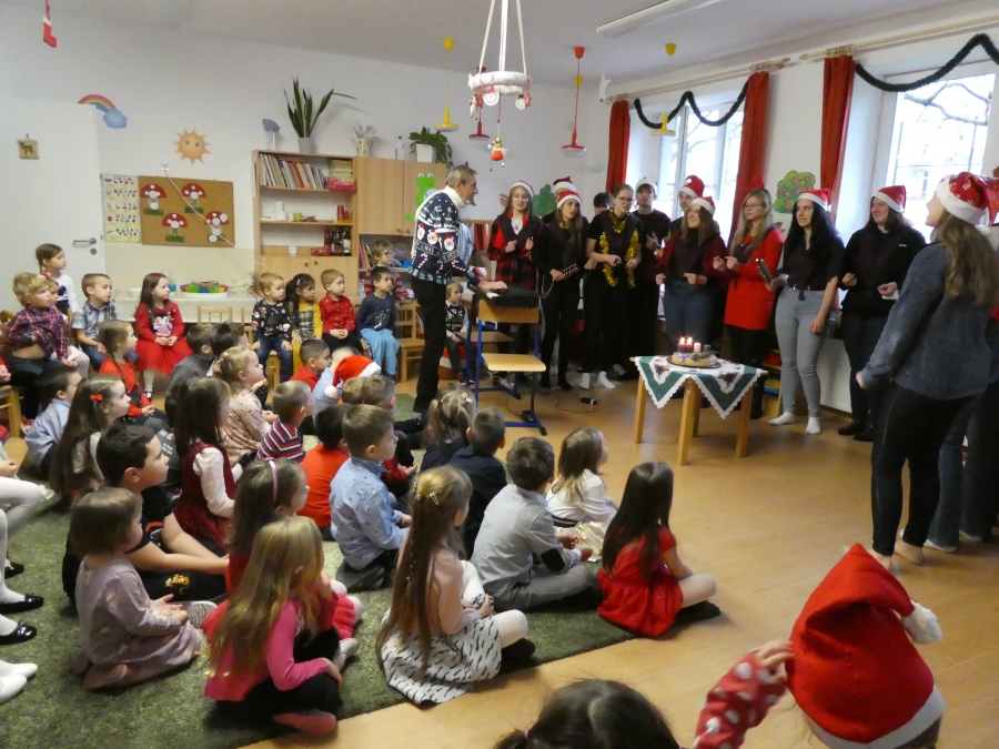 Szent Miklós neve napján az iskolai mikulás ünnepségen vettünk részt, ahol kedves szentünk életét, legendáját idézték fel az alsó tagozatos gyermekek. Míg mi az iskolások színes műsorában gyönyörködtünk, a jó, öreg Mikulás megtöltötte ajándékokkal a csoportszobáink ablakait. Délelőtt eljött hozzánk Regős Zsolt tanár úr vezetésével a Fráter Katolikus Gimnázium Kórusa. Színes, zenés Mikulás – köszöntő, adventi, karácsonyváró dalcsokorral leptek meg bennünket. A közös éneklés varázsos hangulata örömet szerzett kicsiknek, nagyoknak egyaránt.
