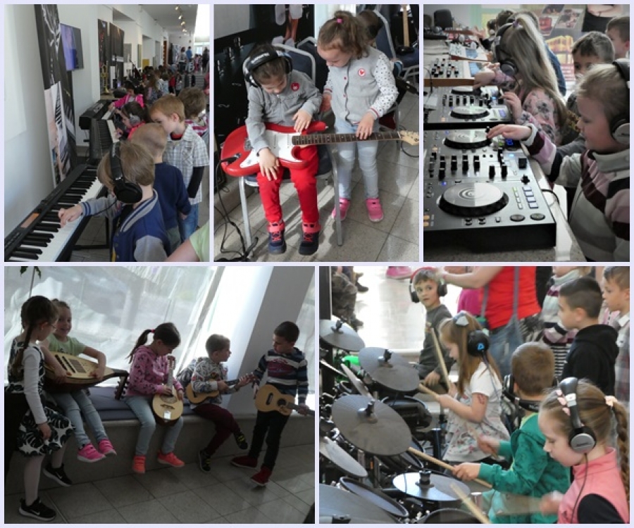 Az Őzike és a Méhecske csoportos gyermekekkel ellátogattunk a MÜHA-ba a Hangszert a kézbe program hangszerkiállítására, zenei játszóterére. A gyermekeknek lehetőségük nyílt dobokkal és ütőhangszerekkel, gitárokkal, basszusgitárokkal, billentyűs, népi és klasszikus hangszerekkel ismerkedni. Kézbe foghatták, megszólaltathatták a különböző hangszereket. Egy picit betekinthettek a stúdiós részleg munkájába is. Miután mindent megnéztünk és kipróbáltunk, Görögh Dániel, a Kodály Spicy Jazz együttes trombitása tartott nekünk tartalmas, élvezetes hangszerbemutatót. Sok érdekességet megtudtunk tőle a trombitáról, zenélt nekünk és játszott velünk mesezene felismerő játékot is. Nagy élmény volt a mai délelőtt minden óvodásunk számára.