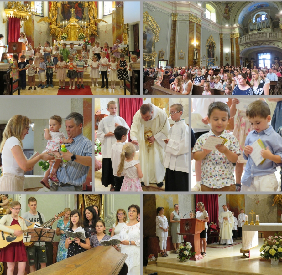 Tanévzáró szent misére gyűltünk össze a gyermekekkel és családjaikkal. Hálát adtunk Istenünknek az eltelt esztendő minden tapasztalásáért; örömeinkért, bánatainkért. Velünk énekeltek a Mindszenti Gitáros Kórus tagjai is. Köszönetet mondtunk azoknak a szülőknek, akik évek óta kitartóan segédkeztek abban, hogy óvodánk mindennapjai zökkenőmentesen teljenek. Azok a gyermekek, akik a tanév folyamán rendszeresen jártak szent misére, szorgalmukért jutalomban részesültek.