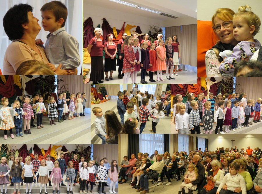 Sok – sok nagymamával, nagypapával és dédikével találkoztunk az Őszidő programunkon. A nagy érdeklődés miatt csak az iskola színháztermében fértünk el. Csillogó szemek, büszke tekintetek, mosolygó arcok követték a picurka és nagyobbacska óvodások minden mondókáját, versét, énekét, táncát. Az ovisok után a Görömbölyi Zengedezők népdalkör énekelt egy kedves népdalcsokrot, majd kicsik és nagyok közös éneklésével zárult az ünnepség. Végezetül egy kis sütizéssel, teázással, beszélgetéssel fejeztük be ezt a szívet melengető délutánt.