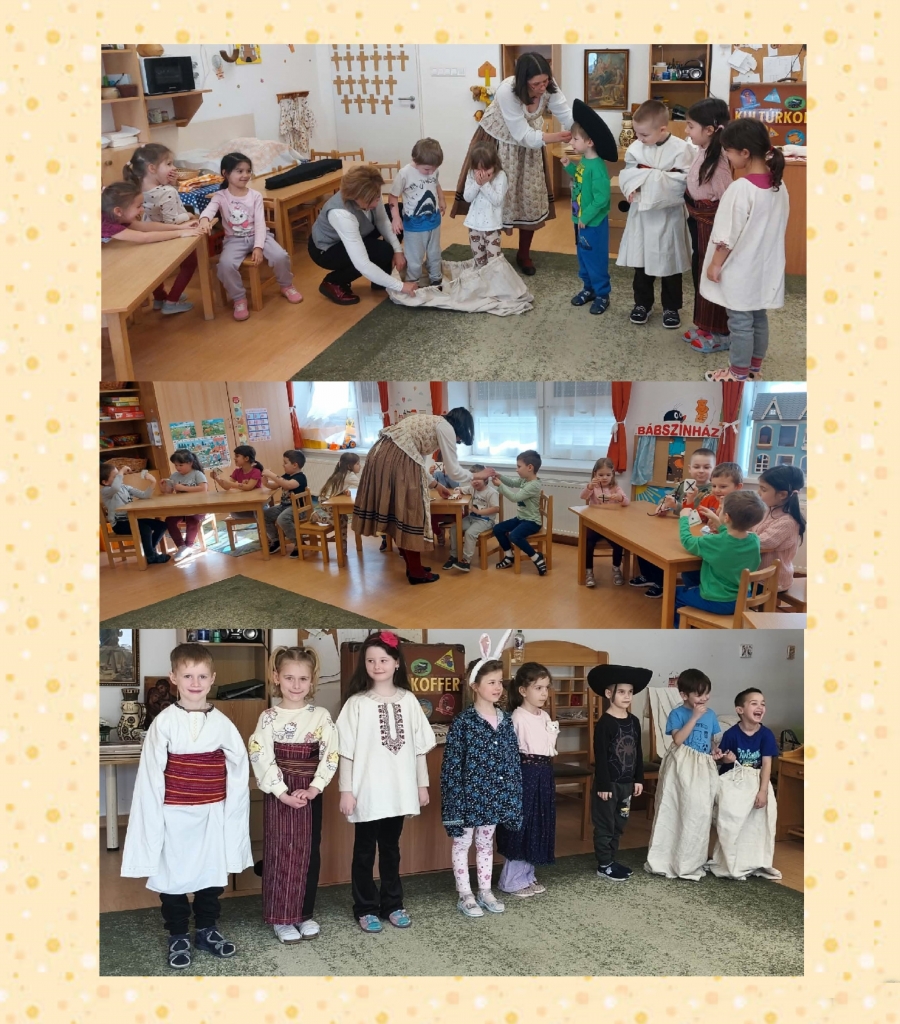 A Herman Ottó Múzeum két munkatársa, Sinka Tímea és Kis Enikő elhozták óvodánkba érdekes interaktív projektjüket, a „Kultúrkoffer”-t. Az utazó bőröndben rejlő múzeumi értékekkel játékos formában ismerkedhettek meg az óvodásaink. Alkalmuk nyílt megtekinteni és kézbe venni a régi mesterségek eszközeit; valamint a különböző használati tárgyakat, melyeket valaha nap, mint nap elővettek az emberek. Láttunk miskakancsót, tulipános ládát, sulykot, ivócsanakot, mézeshuszár - készítő formát, csigacsinálót. Megismerkedtünk a keresztszemes és a matyóhímzéssel, különböző népviseletek fő jellemzőivel, sőt néhány ruhát még fel is próbálhattak a gyerekek. Nagyon érdekes, élvezetes és hasznos programban volt részünk!